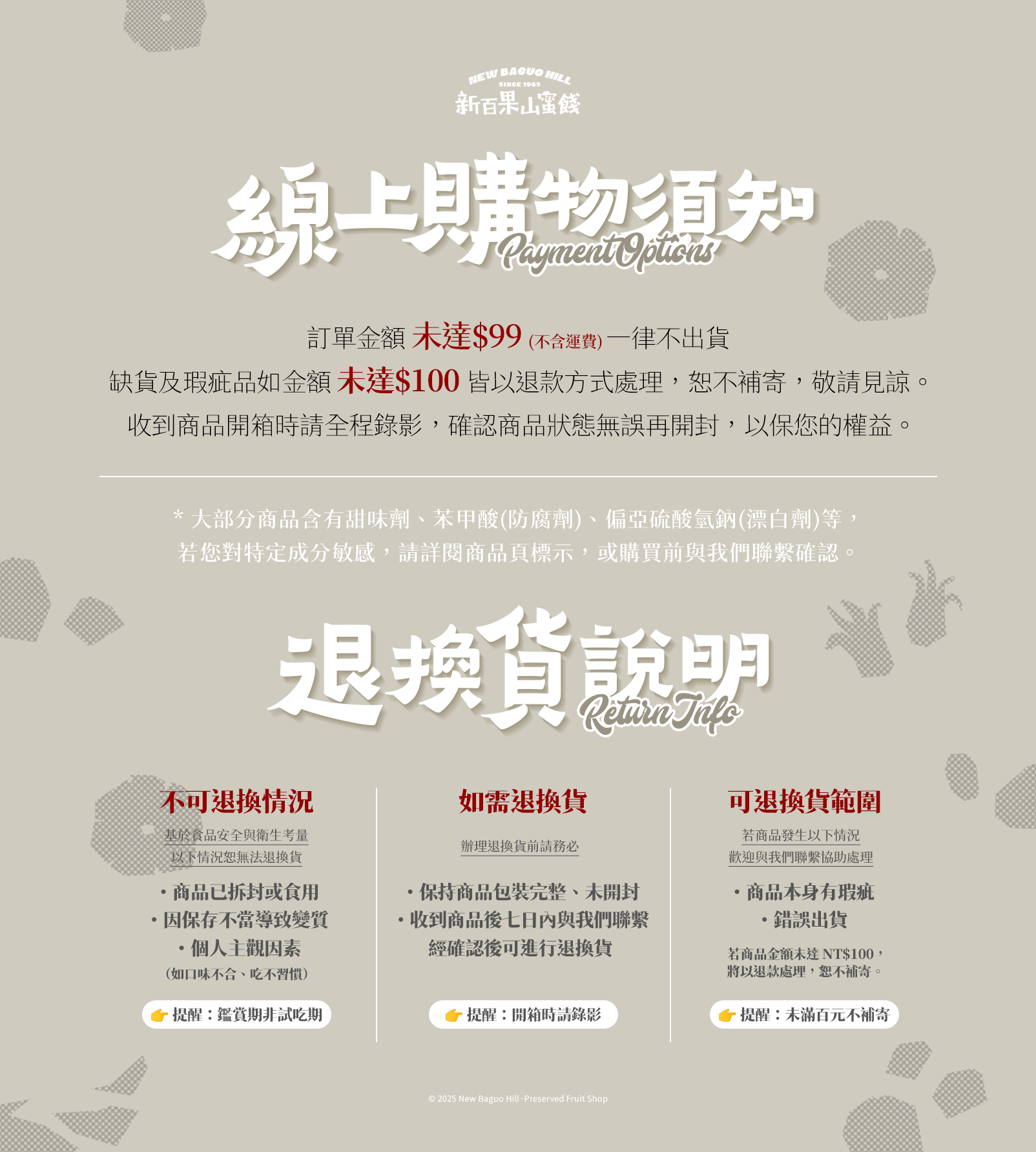 亦可私訊新百果山蜜餞專賣店官方Line:@046fvwym