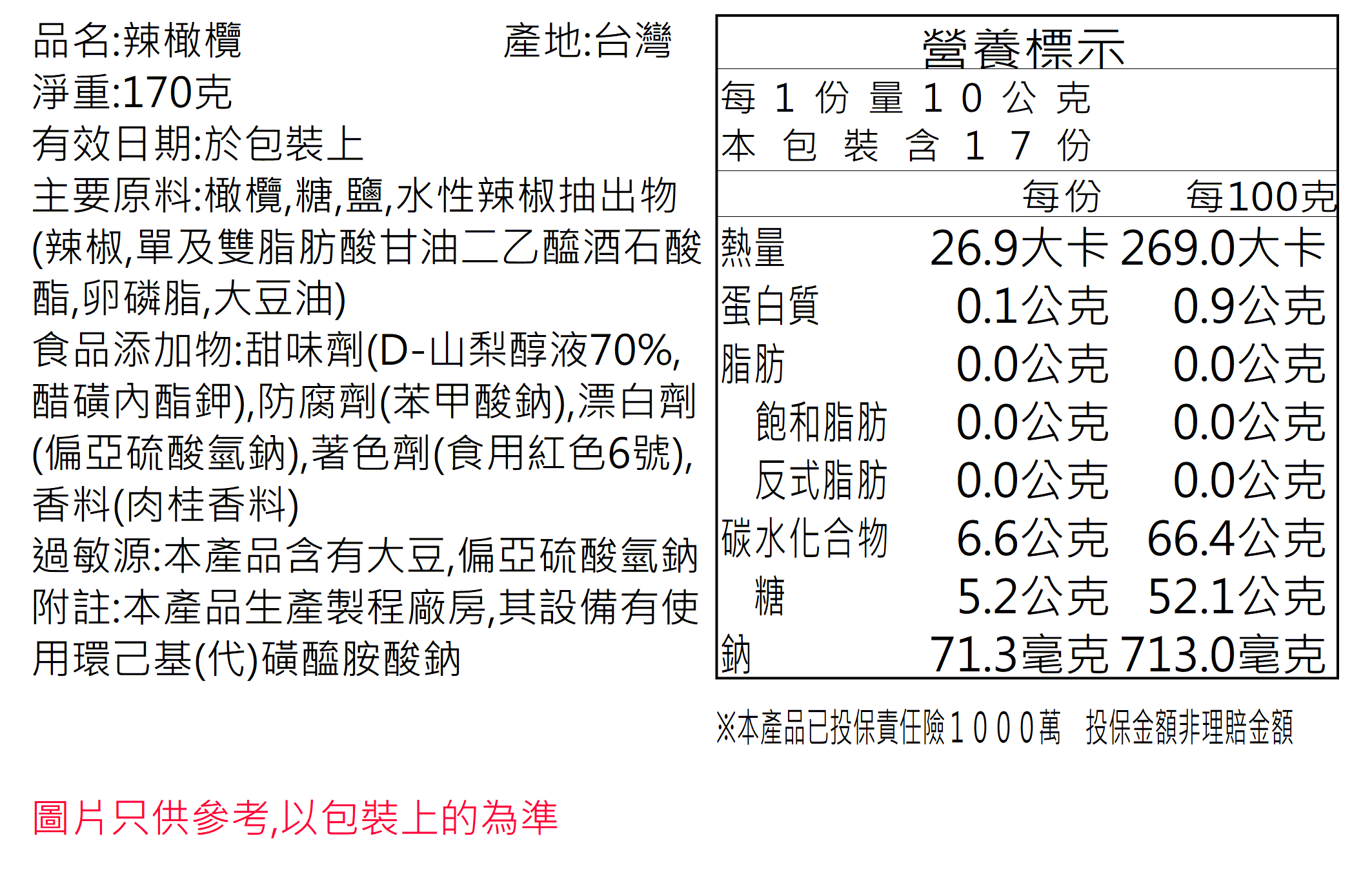 [*過敏源:本產品含有偏亞硫酸氫鈉,不適合其過敏體質者食用。]